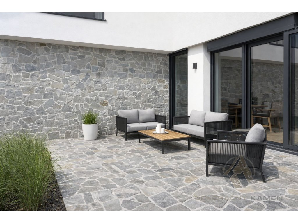 🏡 Dlažby a chodníky: Tento kameň je vynikajúci na použitie ako dlažba na príjazdové cesty, terasy a exteriérové plochy.