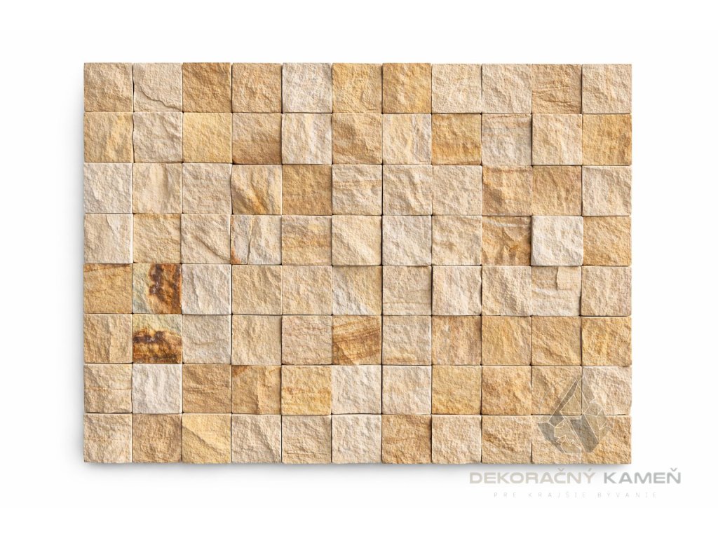 Táto kamenná mozaika z pieskovca je vhodná na použitie v interiéri aj exteriéri. Skvele sa hodí ako obklad steny v obývačke, kúpeľni alebo kuchyni, ale aj ako dekoratívny prvok na fasáde domu či v záhrade. Prírodný kameň vytvára jedinečnú štruktúru a každý obklad je tak originálny.