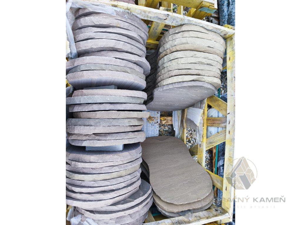 Šlapák z kameňa hnedý má očarujúci pieskovcový vzhľad, a získa si pozornosť množstva ľudí. Každý jeden kus je originál a je jedinečný, preto v konečnom dôsledku uložený na chodníku vytvára nádherný obraz. Povrchová úprava tochto šlapáka je prírodne odstiepnutá a hrany su ručne sekané, čo dodáva tomuto šlapáku jedinečný vzhľad. Nášlapný kameň z prírodného kameňa je vhodný najmä do exteriéru na chodník, okolo bazéna, okolo domu, na terasu.