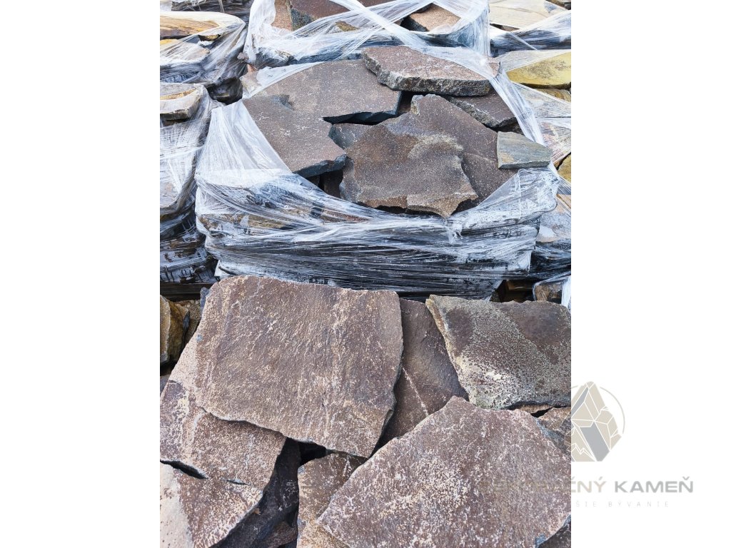Tradičný kameň zo Slovenska, v tmavej (šedo hnedej farbe) nepravidelných rozmerov. Ponúkame andezitové šlapáky v rôznych hrúbkach a rozmeroch podľa potrieb zákazníka.