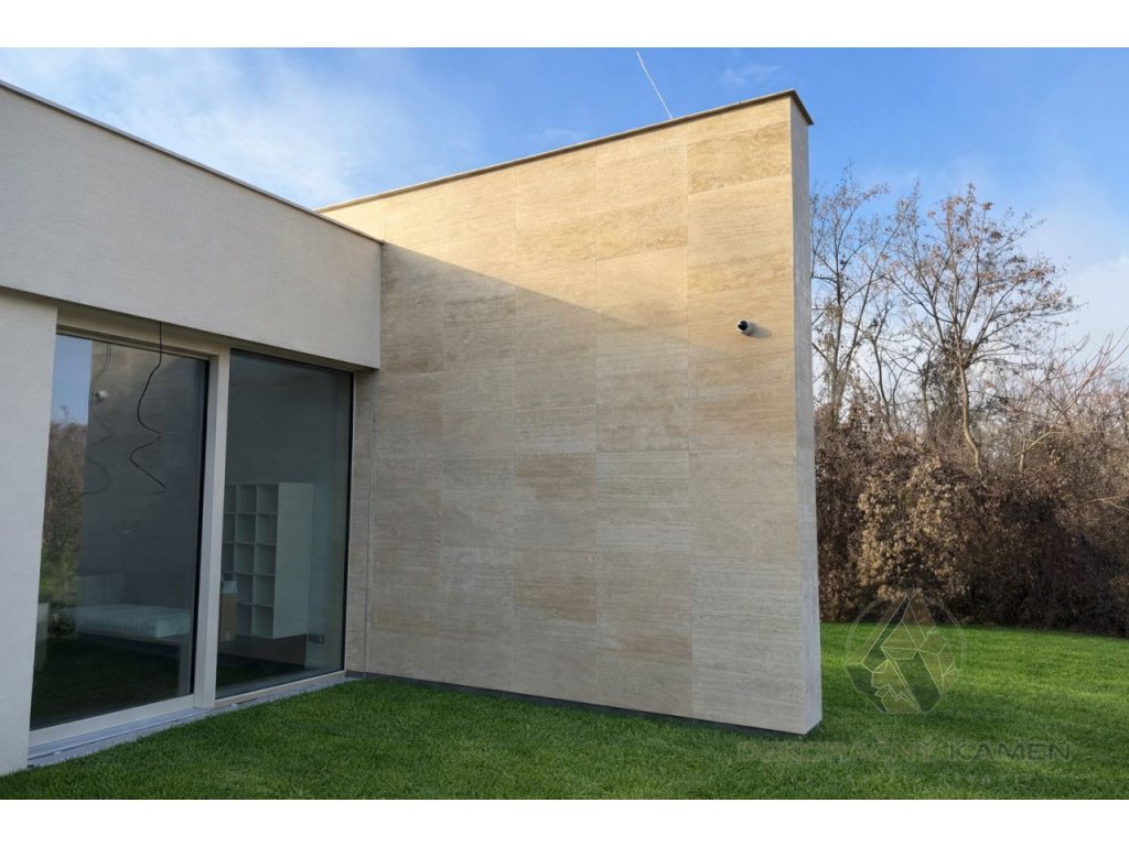 Travertín CLA (akostná trieda A) VC 81 × 40,6 × 1,2 cm je prírodný travertínový obklad s povrchovou úpravou plnený / matný, ktorá zachováva prirodzený charakter kameňa a zároveň poskytuje vizuálne jednotný a príjemný povrch. Typická kresba travertínu, jemné farebné prechody a pórovitá štruktúra robia z tohto materiálu nadčasovú voľbu pre modernú aj klasickú architektúru.
