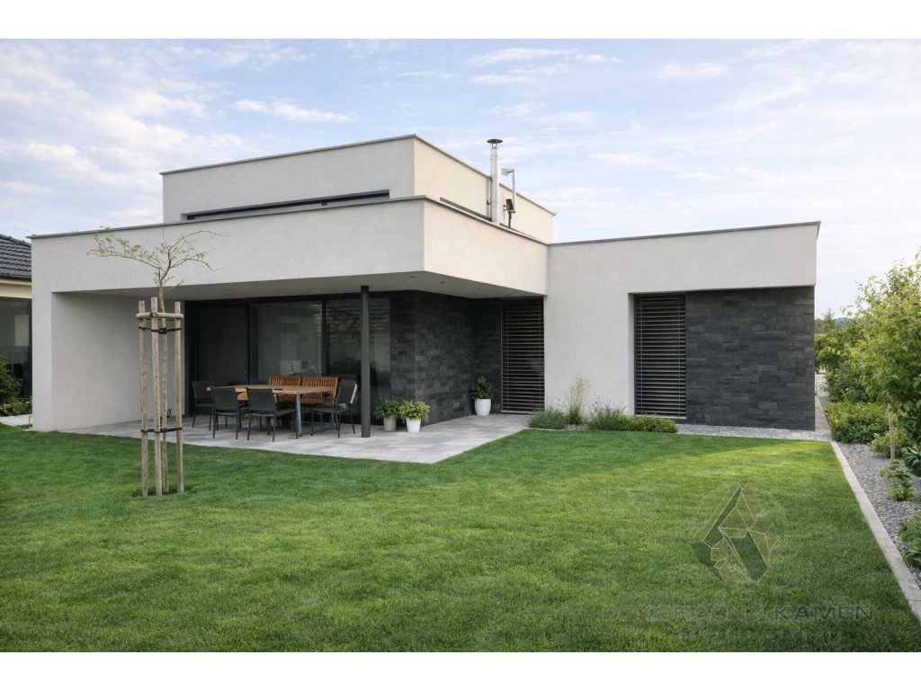 Prírodne štiepaný povrch vytvára autentický kamenný efekt, ktorý pôsobí luxusne a zároveň prirodzene. Obklad je vhodný na steny, fasády, sokle aj krbové obloženia.